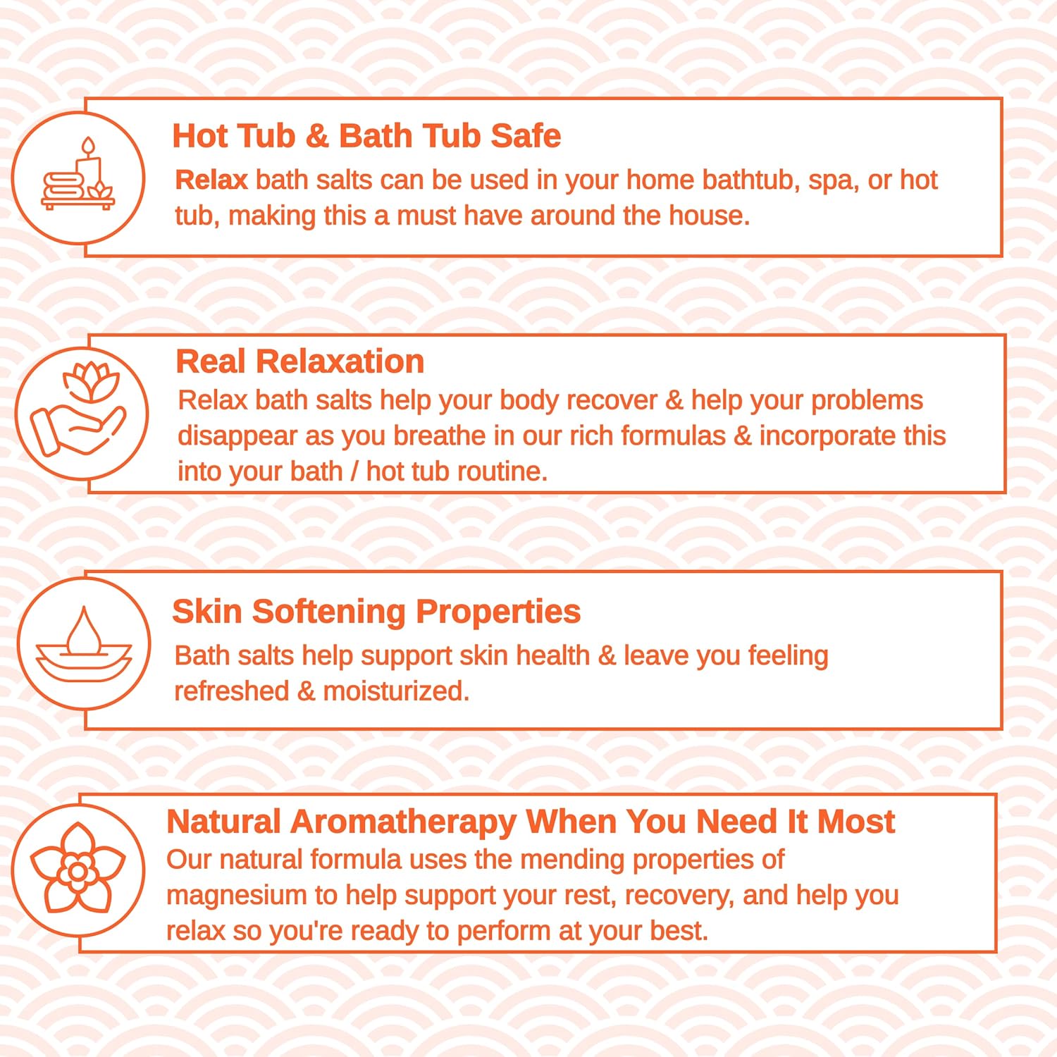 For over 13 years, Loosen up Spa & Tub has been a trusted identify in aromatherapy, providing tub crystals that mix the therapeutic energy of magnesium and different important minerals with luxurious plant-based aromas. Our fastidiously sourced elements be sure that each soak in your tub or scorching tub is a transformative expertise. At Loosen up Spa & Tub, we dwell by our motto: “It’s all the time a good time to chill out.”