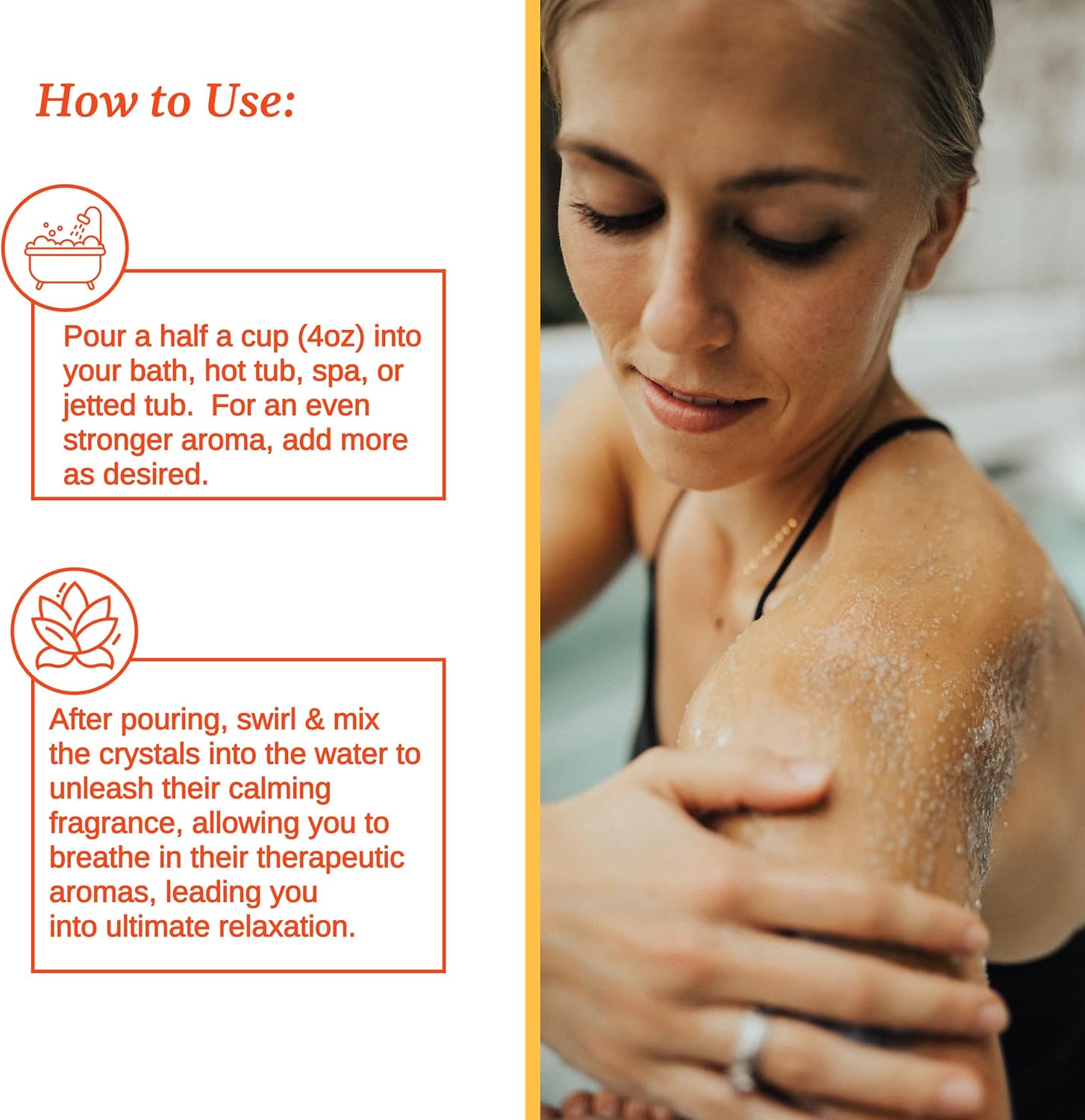 We advocate that you simply begin with 4 oz (1/2 cup) in your soak. Most of our clients discover that this is sufficient to present a pleasing aroma in your scorching tub or tub.