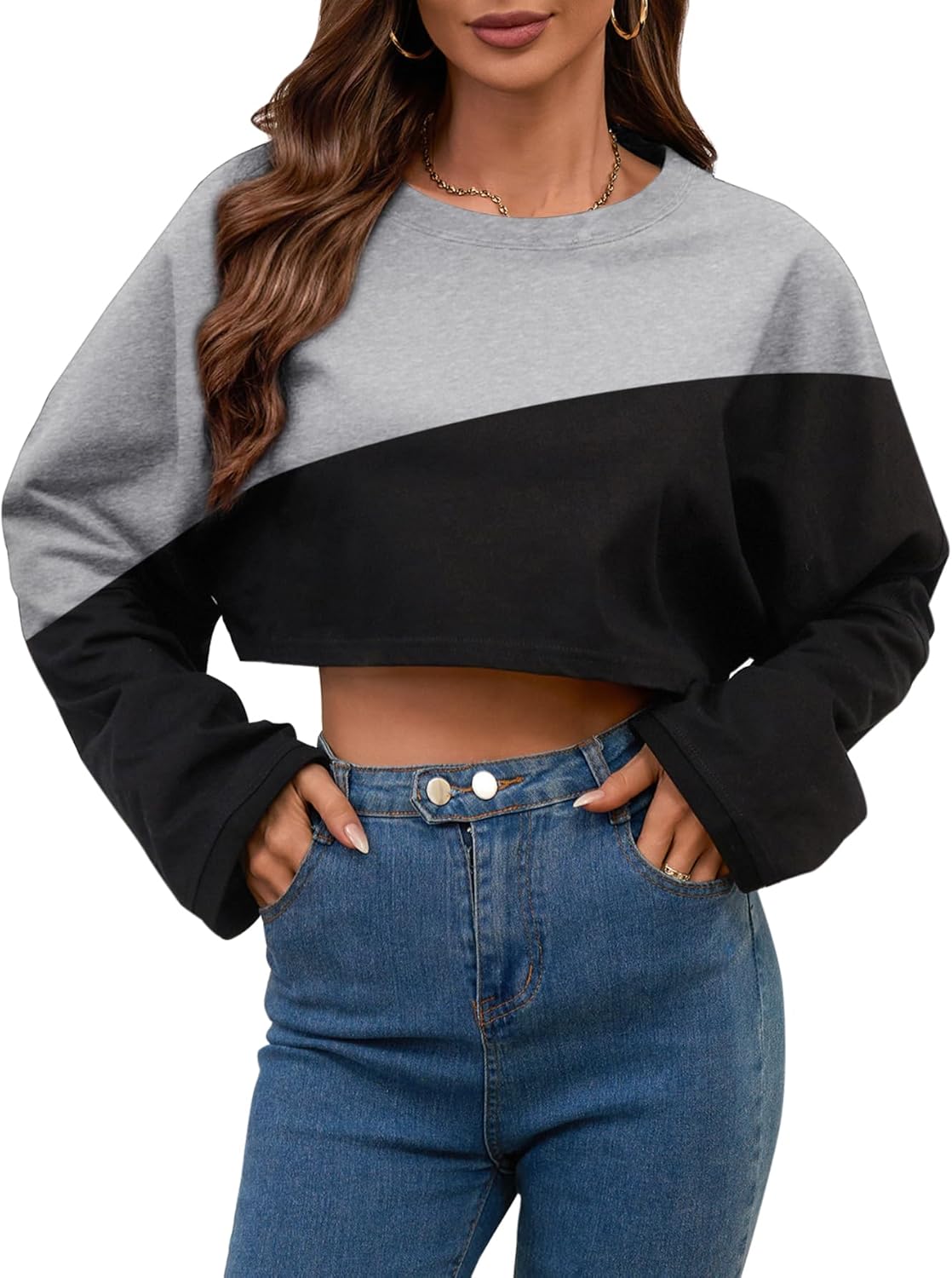 Remidoo Lengthy Sleeve Crop Tops for WomenCropped Sweatshirt Crewneck Pullover Tops