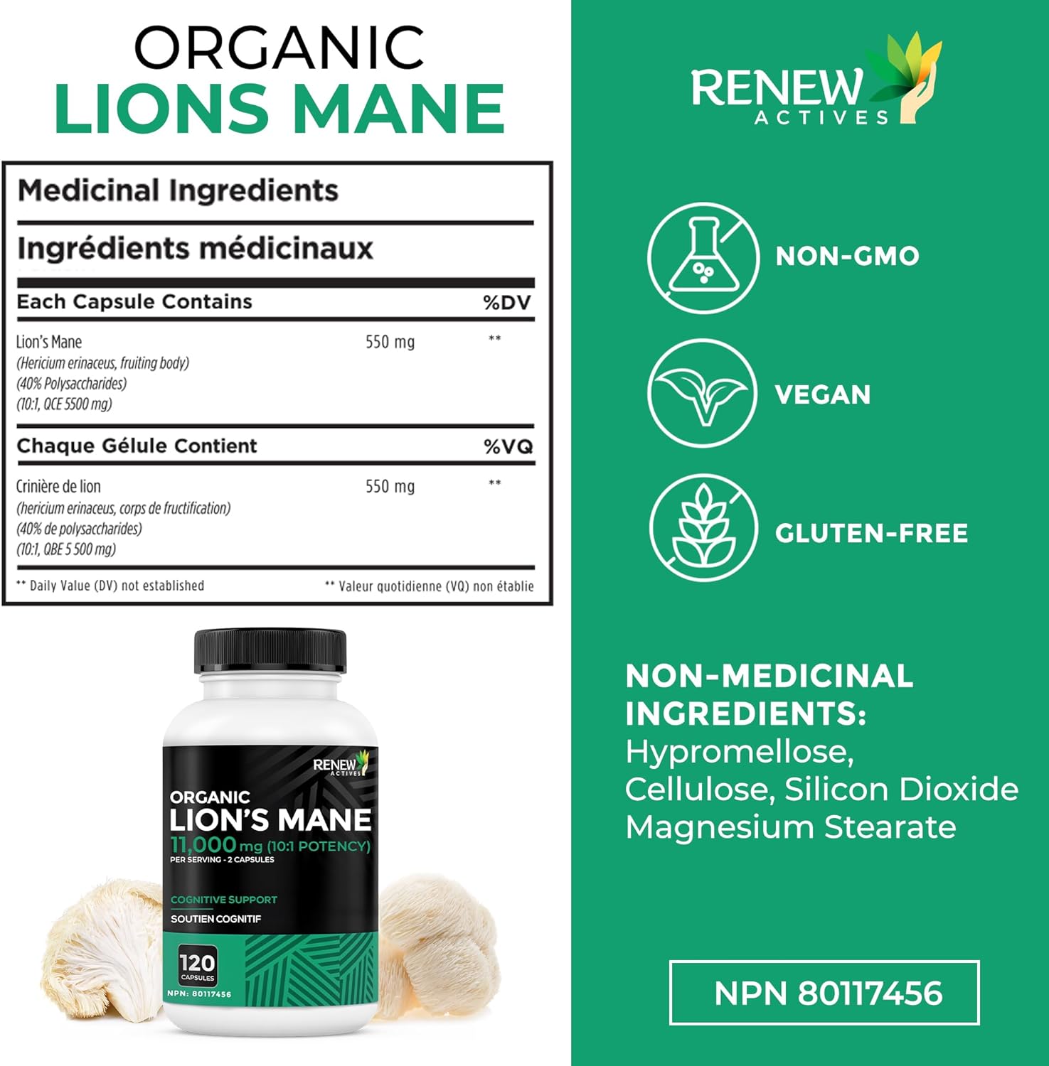 Be the first to review “Renew Actives Premium Organic Lion’s Mane Mushroom 1100MG per 2 Capsules – Supports Brain Function, Memory, Focus, Stress Relief & Immune Health, Non-GMO, Vegan – Made in Canada – 120 Capsules”
