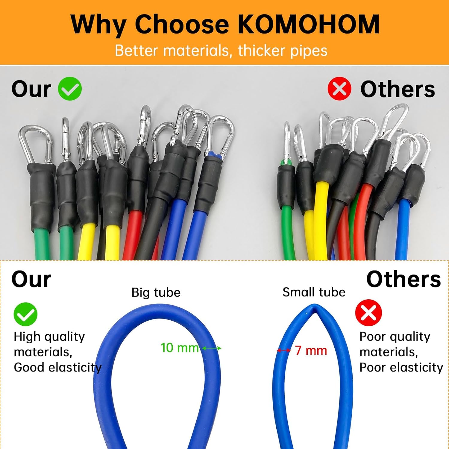 Begin exercising anytime, wherever now and bid farewell to litter and tangles endlessly; Now take pleasure in your exercise with the KOMOHOM resistance bands!