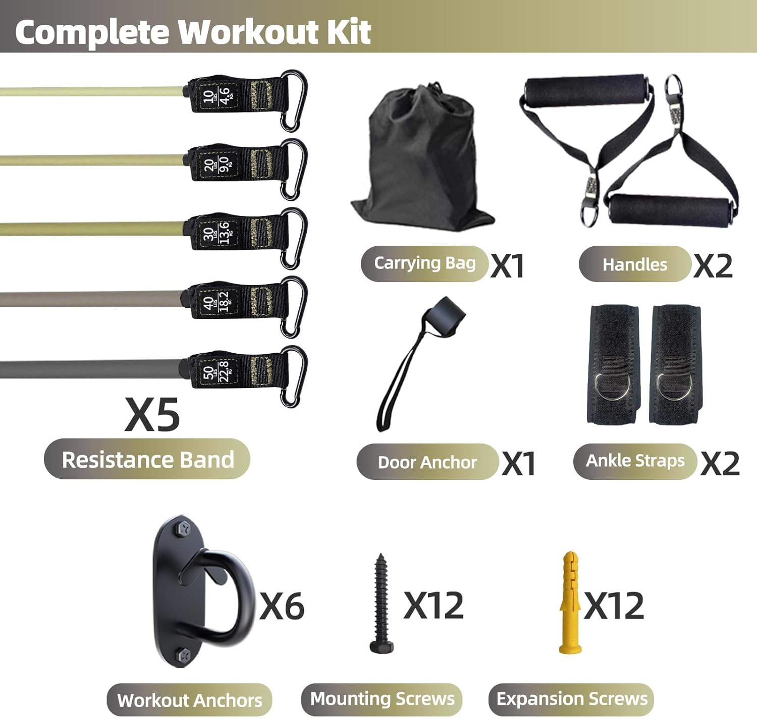Full House Exercise Answer: Our resistance coaching equipment contains 5 ranges of resistance bands, 6 exercise anchors, 2 ankle straps, 2 handles, 1 door anchor, 1 storage bag, offering all the things you want for whole physique exercises