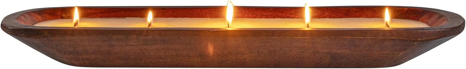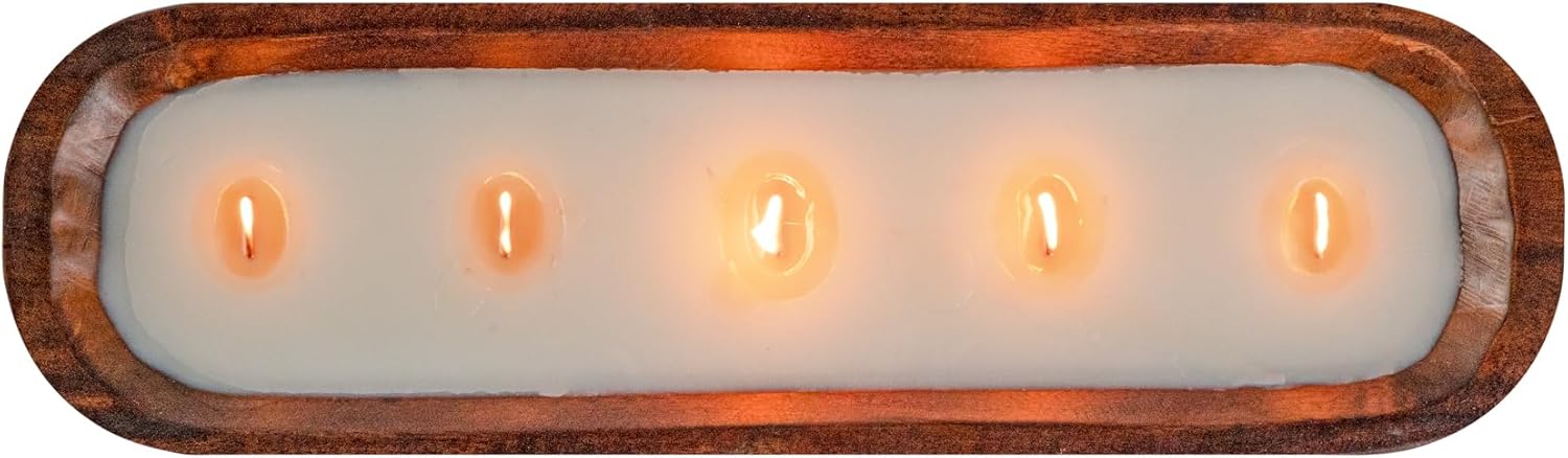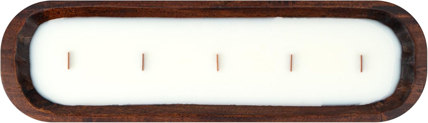 DOUBLE WAX BLEND: The luxurious mix of soy and coconut wax ensures a constant burn, maximizing this wooden dough bowl candle’s burn time. 20 hours of burn time!