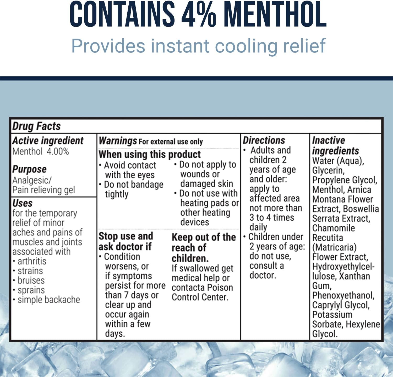 IMMEDIATE, LONG-LASTING AND SOOTHING RELIEF: Dr. Pat’s Unique Components is the popular, topical ache relieving gel for arthritis, sore and stiff muscular tissues, and joint aches and pains. The proprietary menthol cooling system instantly cools your pores and skin and intensifies over time. Upon reaching the utmost degree of aid, the Extremely Freeze system will maintain the soothing sensation for half-hour or extra.