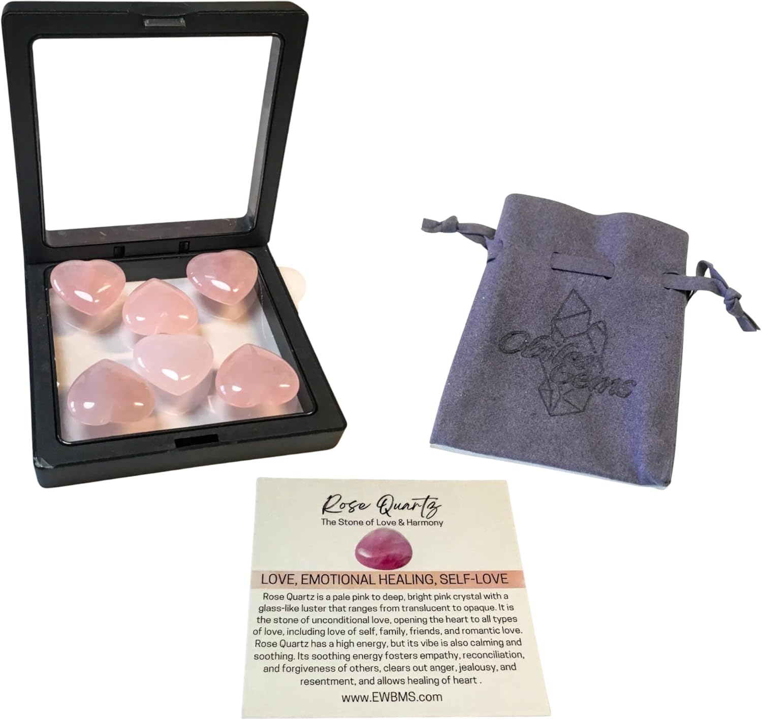 Be the first to review “Rose Quartz 1 Inch Hearts, Set of 6 Heart Chakra Healing Crystals, High Energy Pocket Palm Stones with Info Card, Premium Drawstring Storage/Travel Bag & Display Case, Reiki Enhanced”