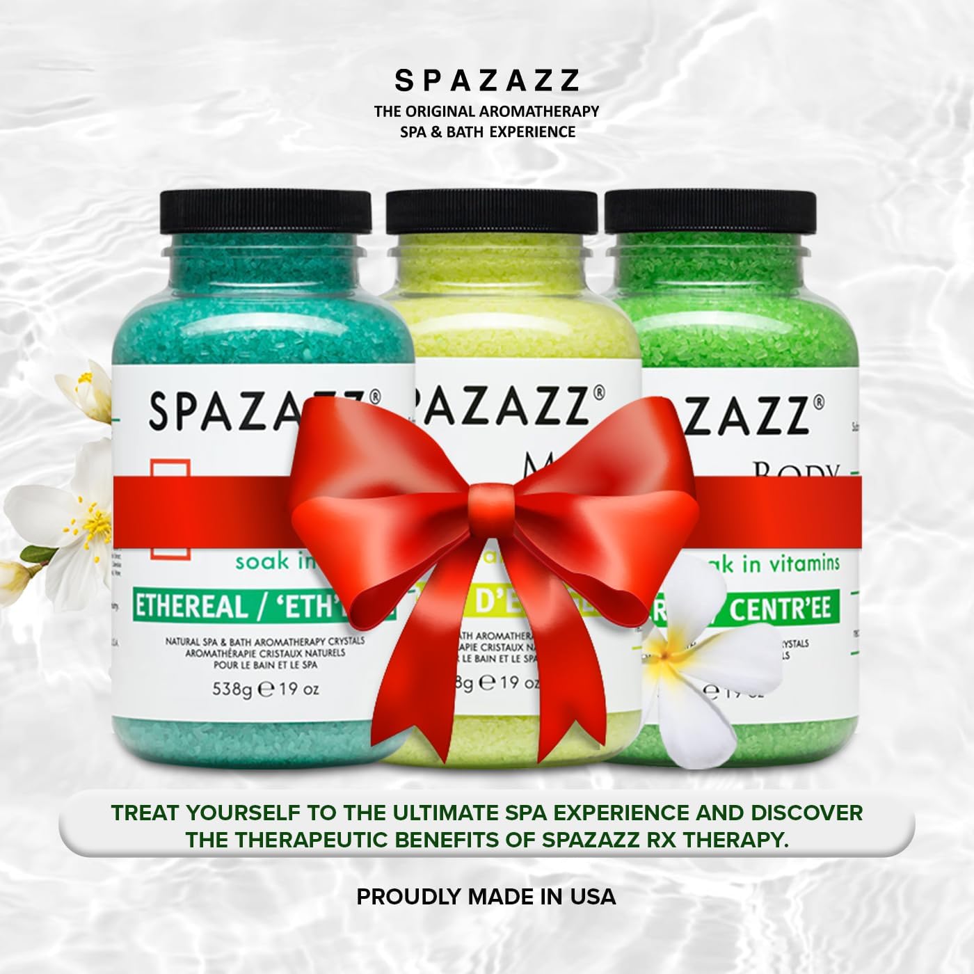 Spazazz Aromatherapy Spa Shock Aroma hot tub aromatherapy, spa bath salts, bath soak for relaxation, spa therapy salts, Spazazz Aromatherapy Bath Salt Crystals Destination Collection RX Therapy Spa and Hot Tub Aromatherapy Bath Salt Crystals - Mind Body and Soul Bundle Gift Set