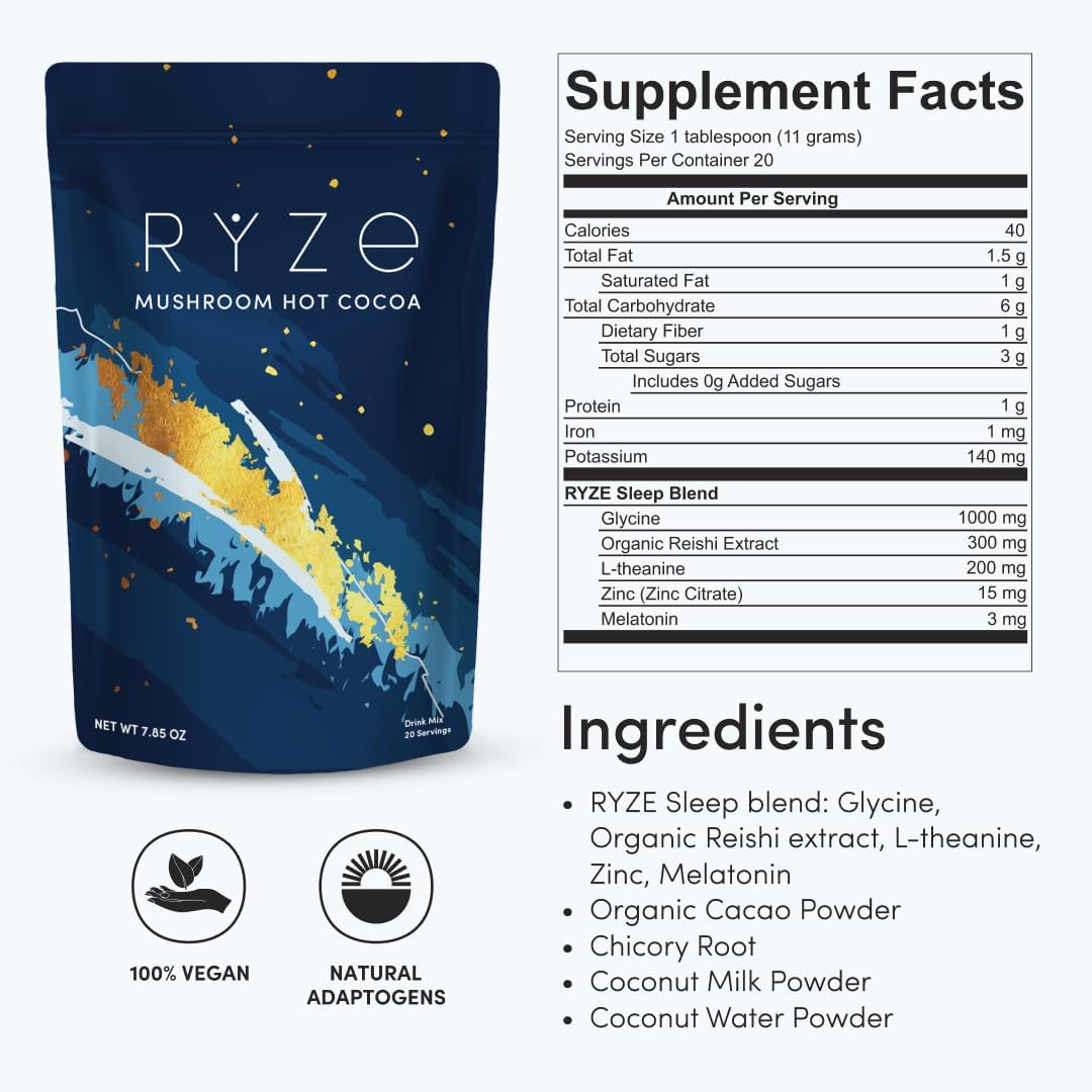 Be the first to review “RYZE SUPERFOODS Mushroom Hot Cocoa Melatonin Sleep Supplement, Keto Cocoa Powder with Reishi Mushroom, Melatonin, Glycine, Cacao, L-Theanine, Chicory to Help Fall Asleep and Stay Asleep, 20 Servings”