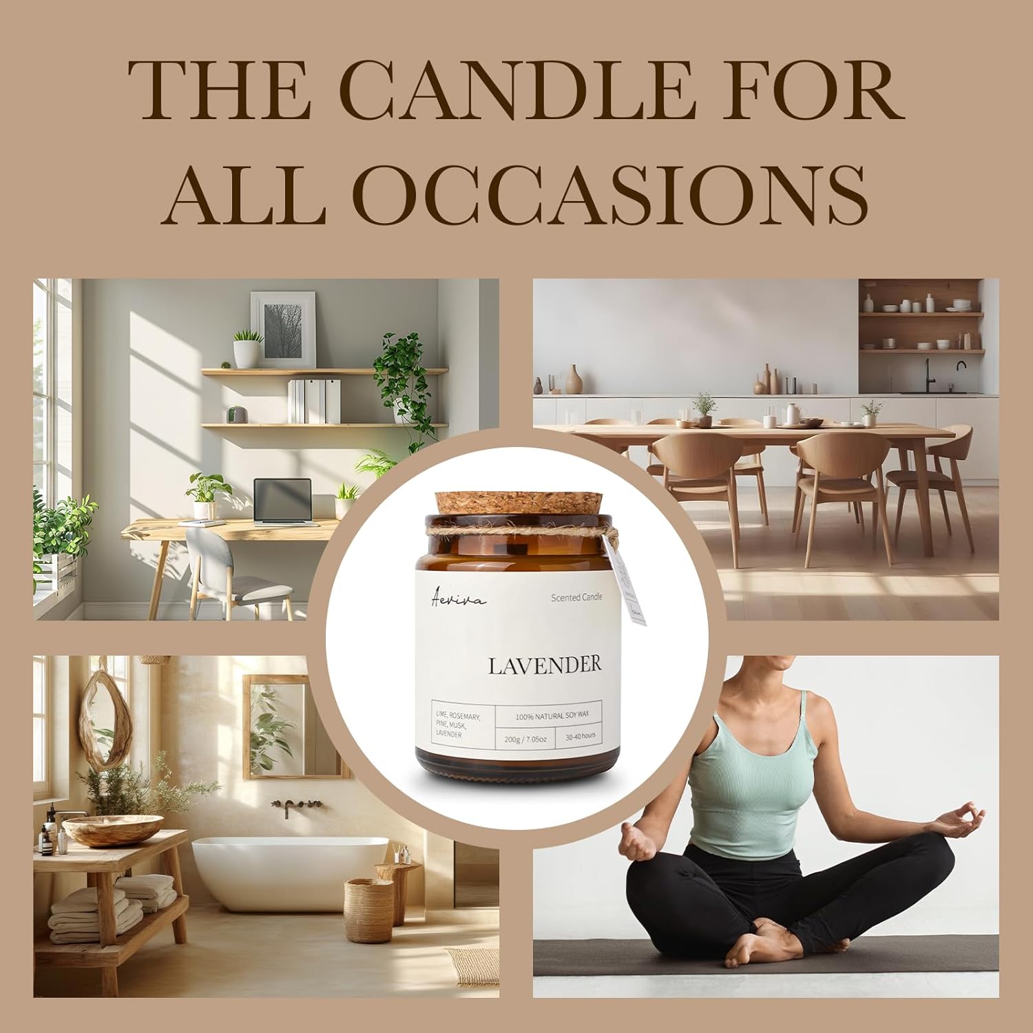 Lavender Scented Candle: Presents a chilled perfume, with floral notes of contemporary lavender buds blended with refined hints of candy herbs and a woody base that unwinds an extended day of stress