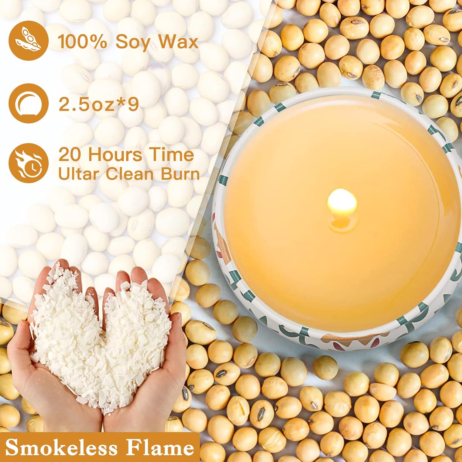 Our scented candles are fabricated from 100% lead-free cotton and don’t produce black smoke whenever you gentle the candlePremium Important Oils & Pure Soy Wax, completely innocent to people and pets8% excessive focus pure important oil, offering you with a richer perfume experienceLonger burning time, Every candle weighs 2.5 ounces and burns as much as 15-20 hours, The entire set will last as long as 160 hours