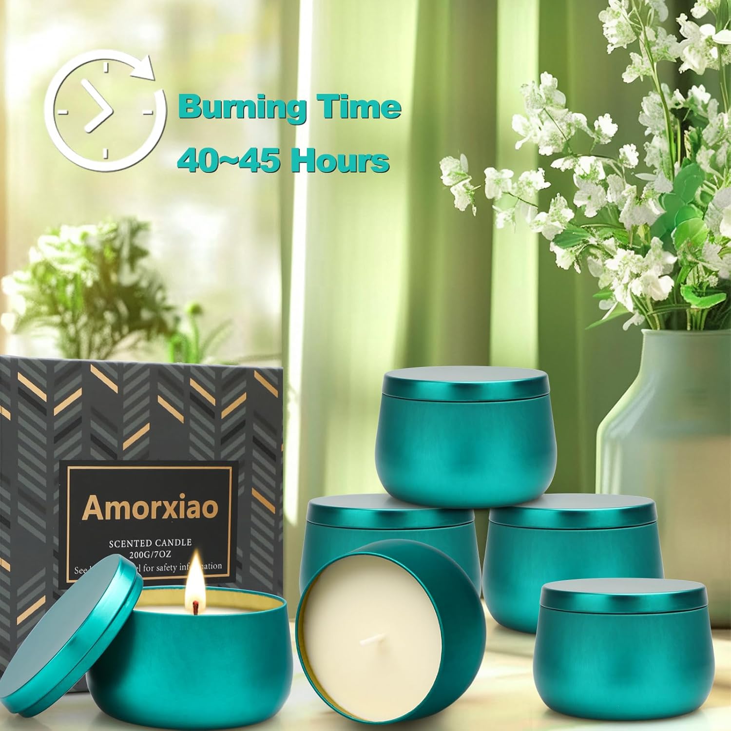 6 pack candles for dwelling scentedEach candle weighs 7 ozMade of premium soy wax and eight% important oilLong lasting burning for 40~45 hours
