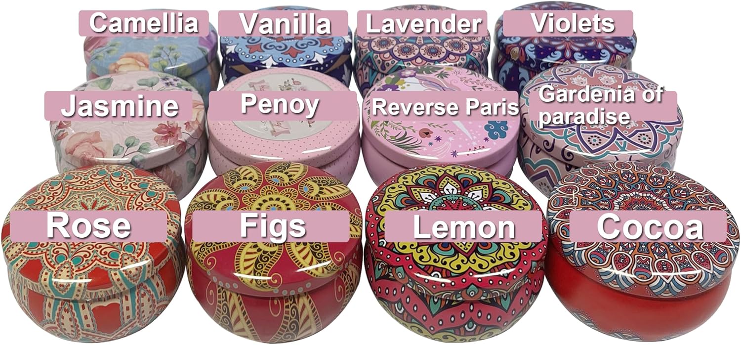 【Scented Candles Reward Set 】: Incorporates 12 Scents:Jasmine,Lavender,Paris Reversal,Fig,Violet, lemon, rose,Vanilla, Cocoa, Paradise Gardenia,Peony, Camellia