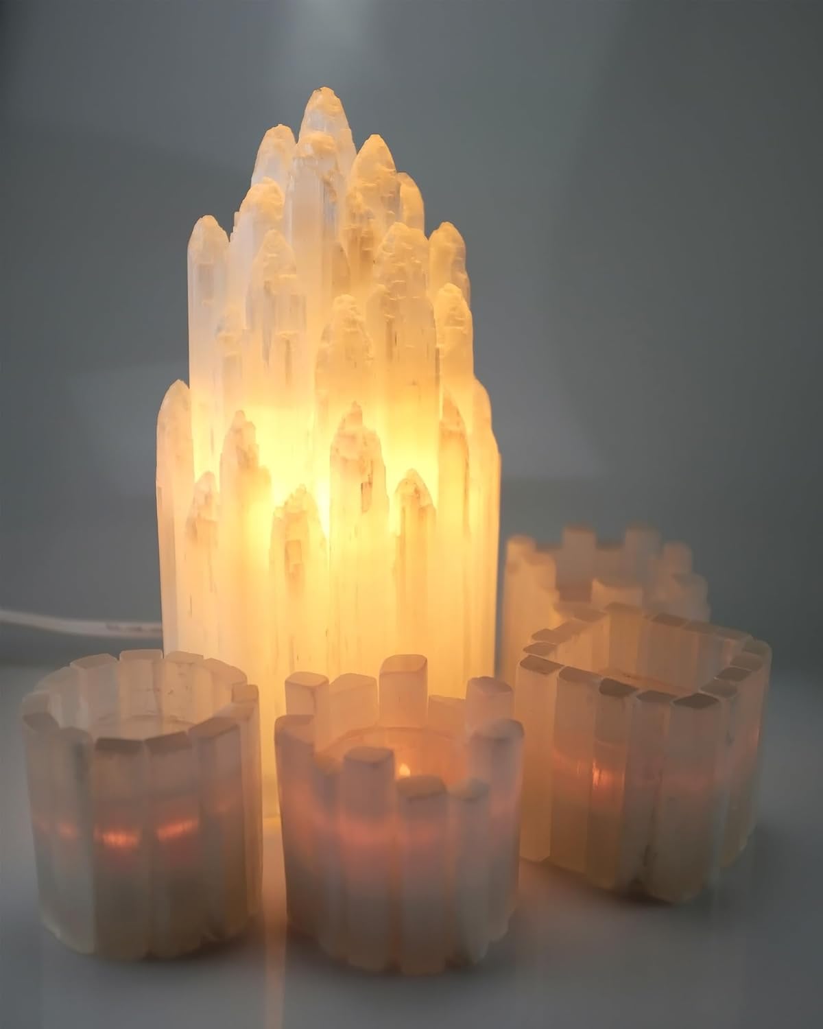 For celebrations or particular events (e.g. birthdays, weddings, vacation events), Selenite candleholders can be utilized as desk centerpieces to create a heat and welcoming environment.