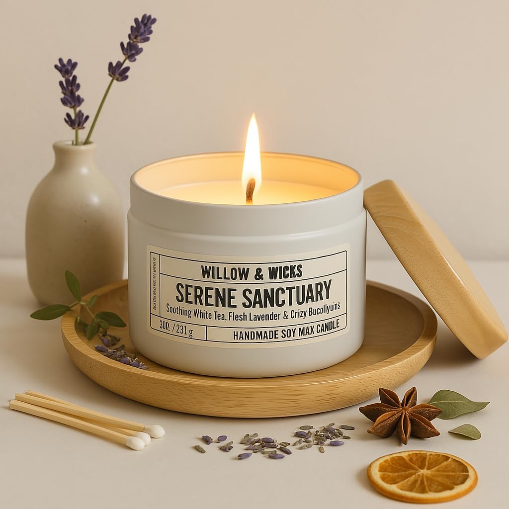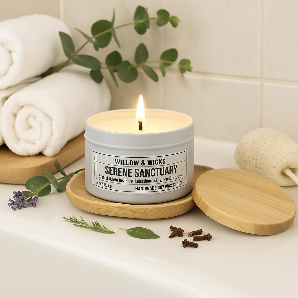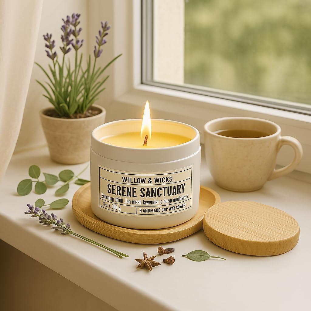 Be the first to review “Serene Sanctuary Soy Candle β 8oz Handmade | White Tea, Lavender & Eucalyptus | Clean-Burning & Non-Toxic | White Tin | Spa Candle for Relaxation & Gifting”