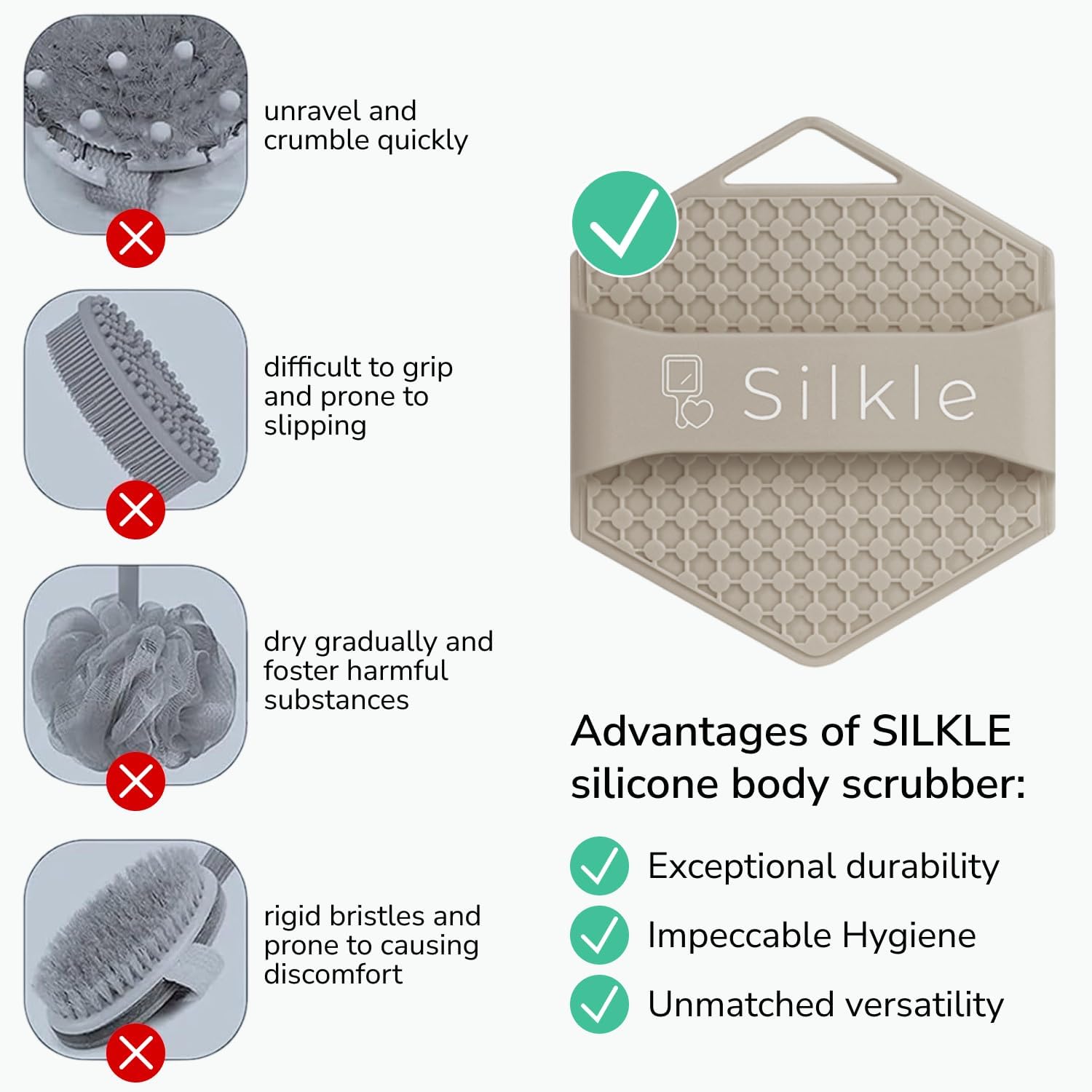 Sturdy, reusable & straightforward to wash: Constituted of premium 100% silicone that rinses clear in seconds and dries rapidly. Retains its form use after use and received’t fray like mesh puffs – a extra hygienic loofah different and long-lasting washcloth substitute.