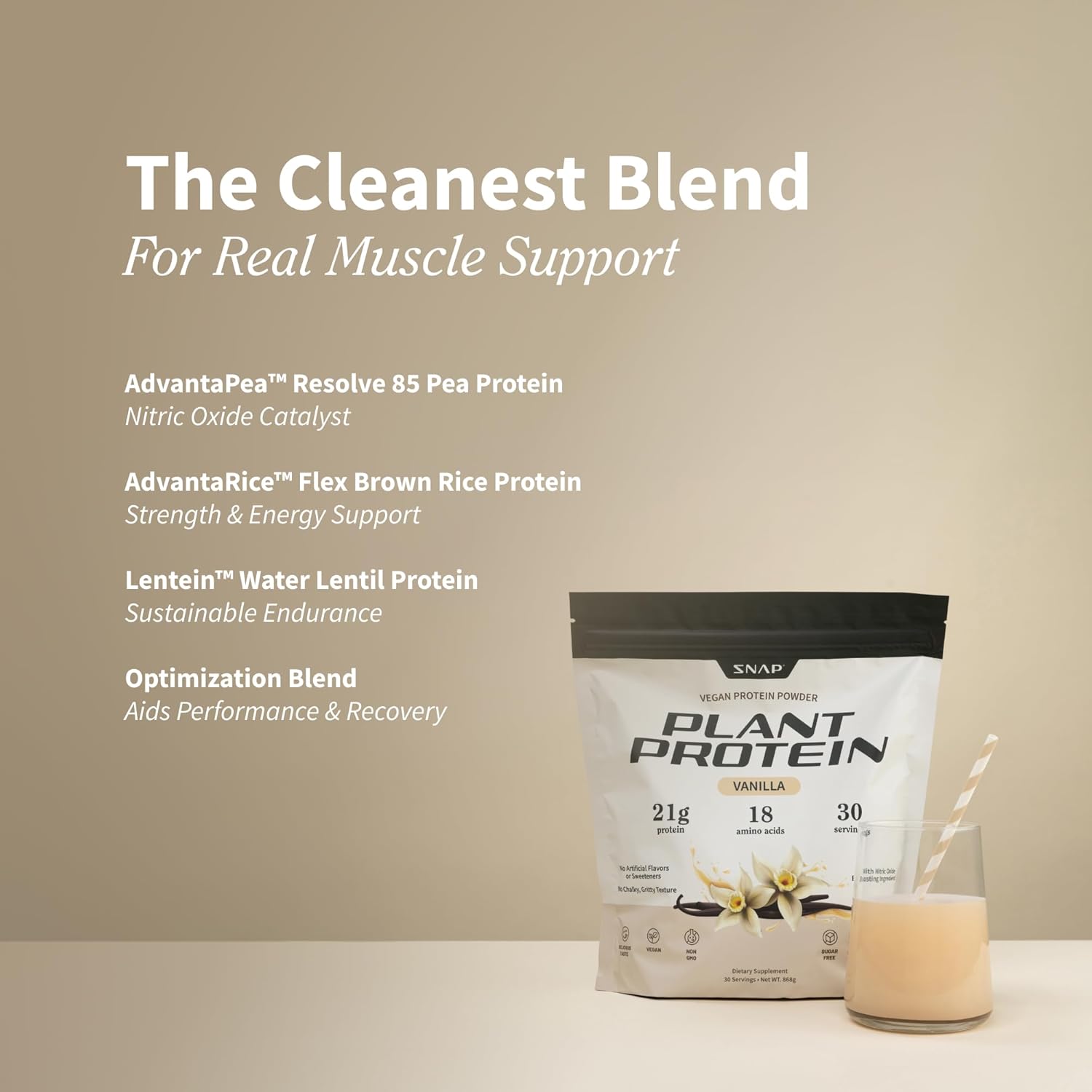 Snap Supplements Organic Plant Based Vegan Protein Powder Nitric Oxide Boosting Protein Powder, Vanilla Bean, BCAA Amino Acid for Muscle Growth, Performance & Recovery – 30 Servings (Vanilla)