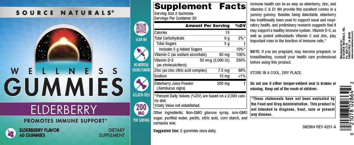 Be the first to review “Source Naturals Wellness Elderberry Gummies, Promotes Immune Support*, 200 mg – Antioxidant Support – 60 Gummies”