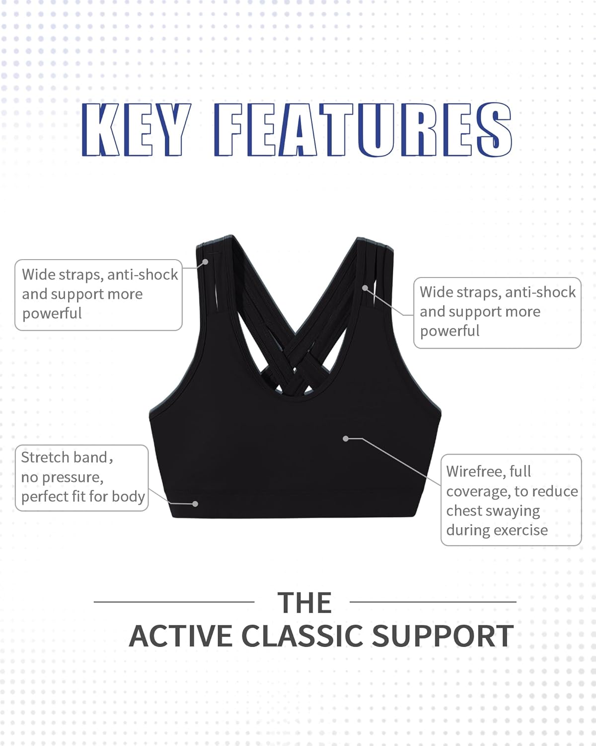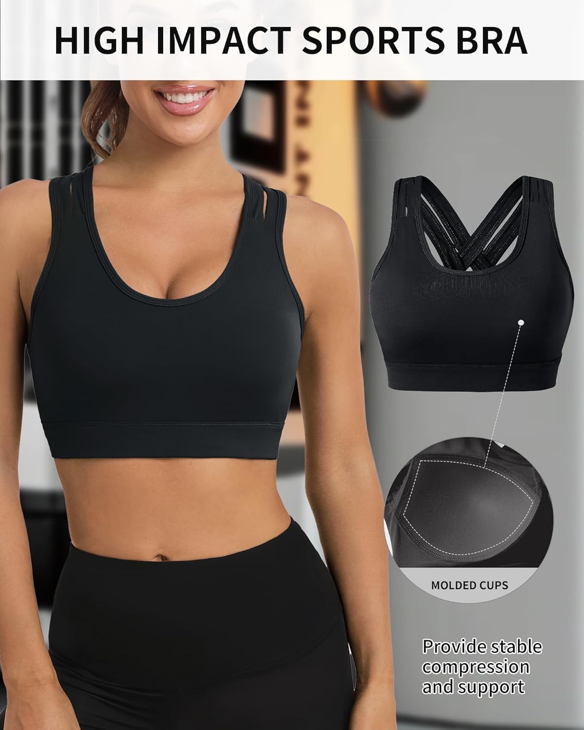 Sports Bras for Women High Support, Molded Cup High Impact Criss Cross Back Workout Yoga Bra No Removable Padded Bra