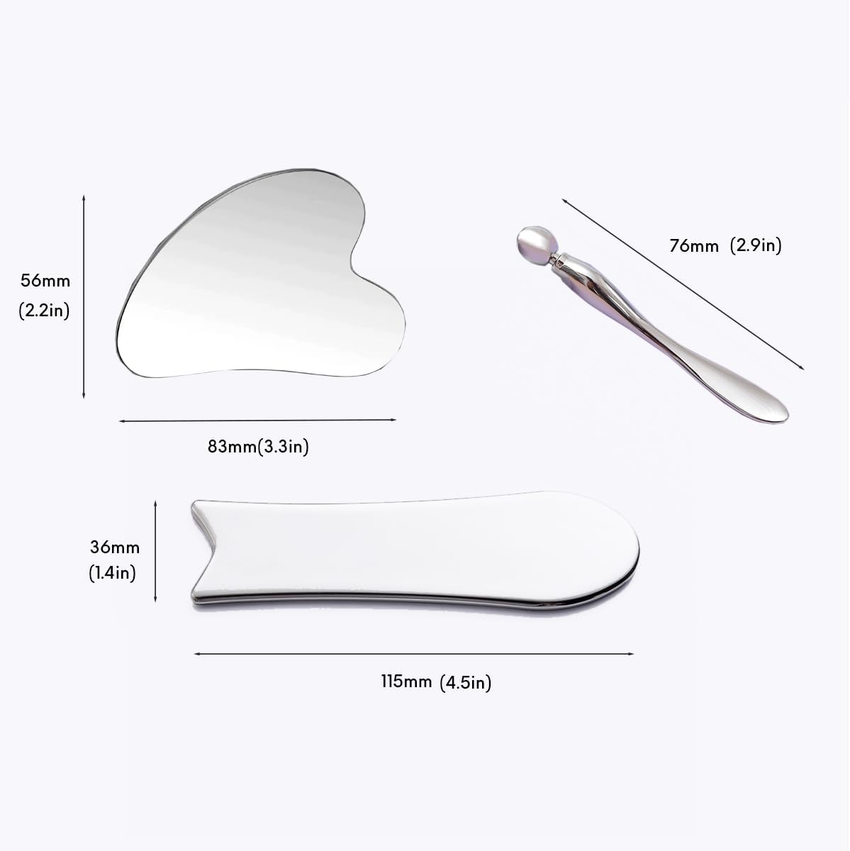 High quality & Sturdiness: MOKIUER Gua Sha facial instrument equipment are created from high-quality 100% stainless-steel and are sturdy and long-lasting. Not like conventional Gua Sha stone, jade, and buffalo horn instruments, No want to fret about breakage.
