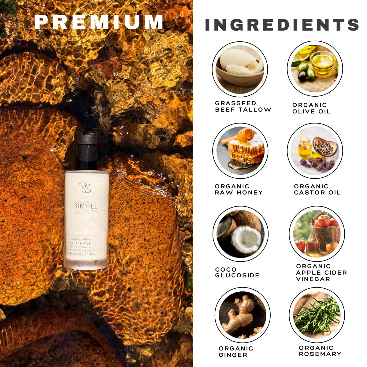 MOISTURIZING: Grassfed beef tallow, Argan oil & Castor oil maintain your pores and skin moisturized and nourished after washing.