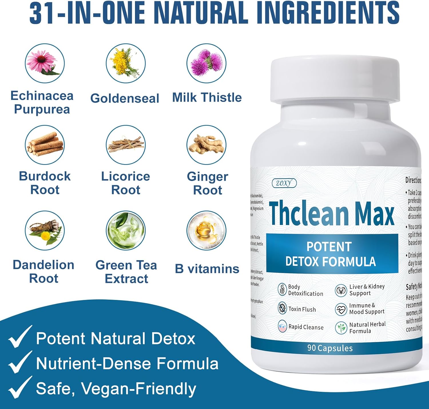 Highly effective Full-Physique Detox: Infused with potent natural extracts, nutritional vitamins, and minerals, ThcleanMax shortly and successfully eliminates toxins. It helps liver, kidney, and digestive well being for total well-being. Whether or not detoxing for a job or well being causes, these detox cleanse capsules ship clear outcomes with out disrupting your physique’s pure steadiness