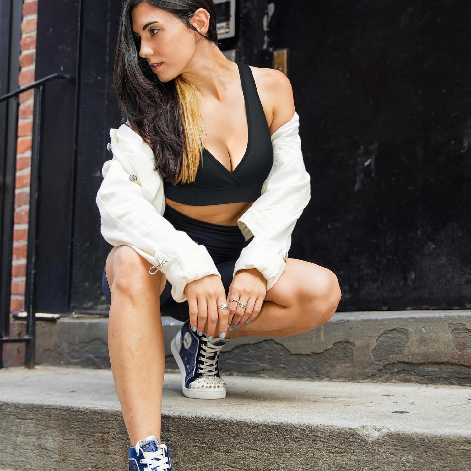 VEQKING Womens Deep V-Neck Sports activities Bras