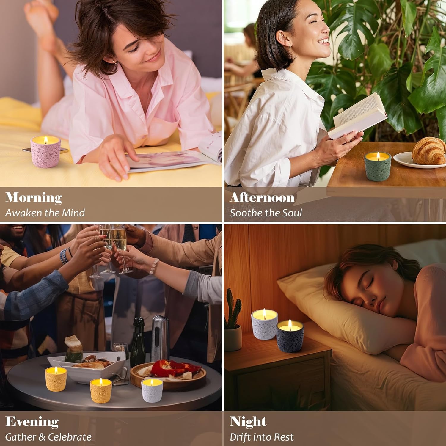 🌸 Six Distinctive Aromas: Every candle delivers a unique temper: refreshing inexperienced notes that calm and clear the thoughts, brilliant citrus to uplift and energize, grounding woody scents for heat and luxury, elegant floral blends to encourage romance, mysterious fougère accords for depth and serenity, and light-weight chypre florals for a refined, tranquil atmosphere.