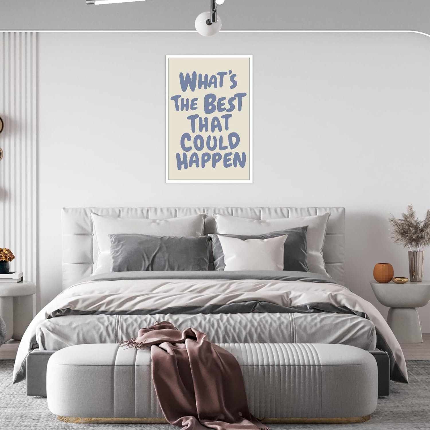Encourage a way of calm and chance with this elegant “What’s the Greatest That Might Occur” wall artwork. That includes mild blue typography on a impartial cream background, the design evokes serenity whereas delivering a considerate, optimistic message. It’s a great addition to areas meant for relaxation, reflection, or self-growth—like bedrooms, studying nooks, or yoga areas. Printed on high-quality canvas with fade-resistant inks, this poster brings lasting inspiration to your partitions.