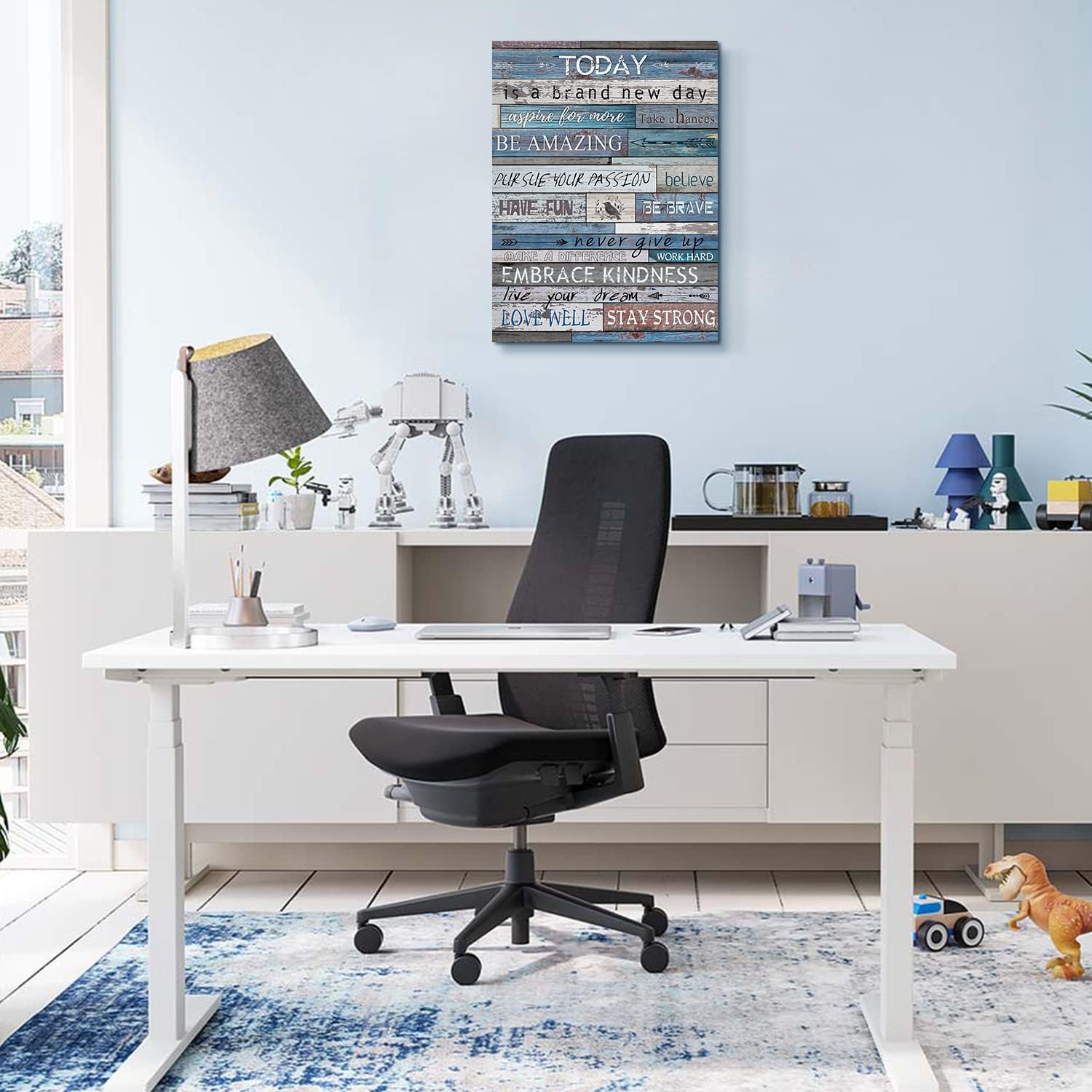 Be the first to review “WOWGOOMO Blue Inspirational Canvas Wall Art for Office Positive Quotes Wall Decor Rustic Wood Grain Motivational Theme Poster for Bedroom Classroom Home Walls Framed Office Artwork for Men Teens 12×16”