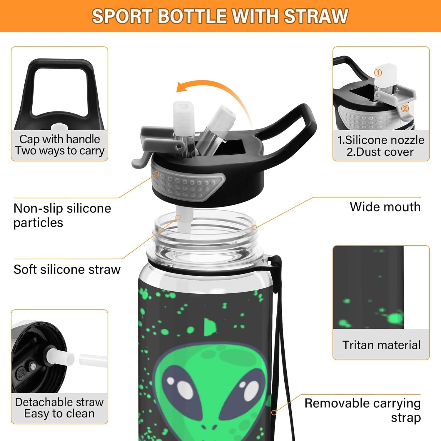 Be the first to review “Wusikd Green Alien Water Bottle Tritan BPA-Free Drink and Straw Leakproof Motivational Space Drinking Water Bottles with Carrying Strap for Office, Gym, Outdoor Sports”