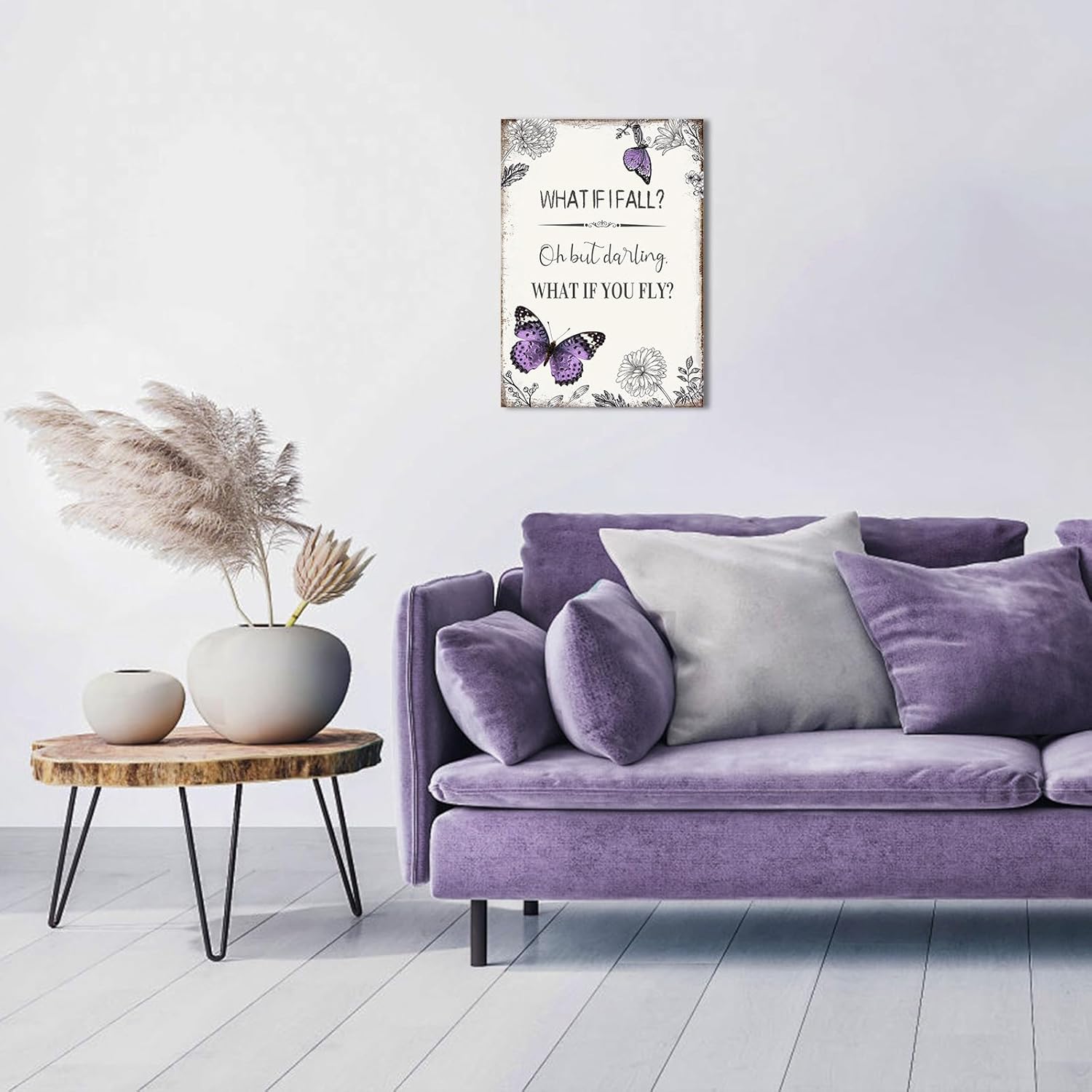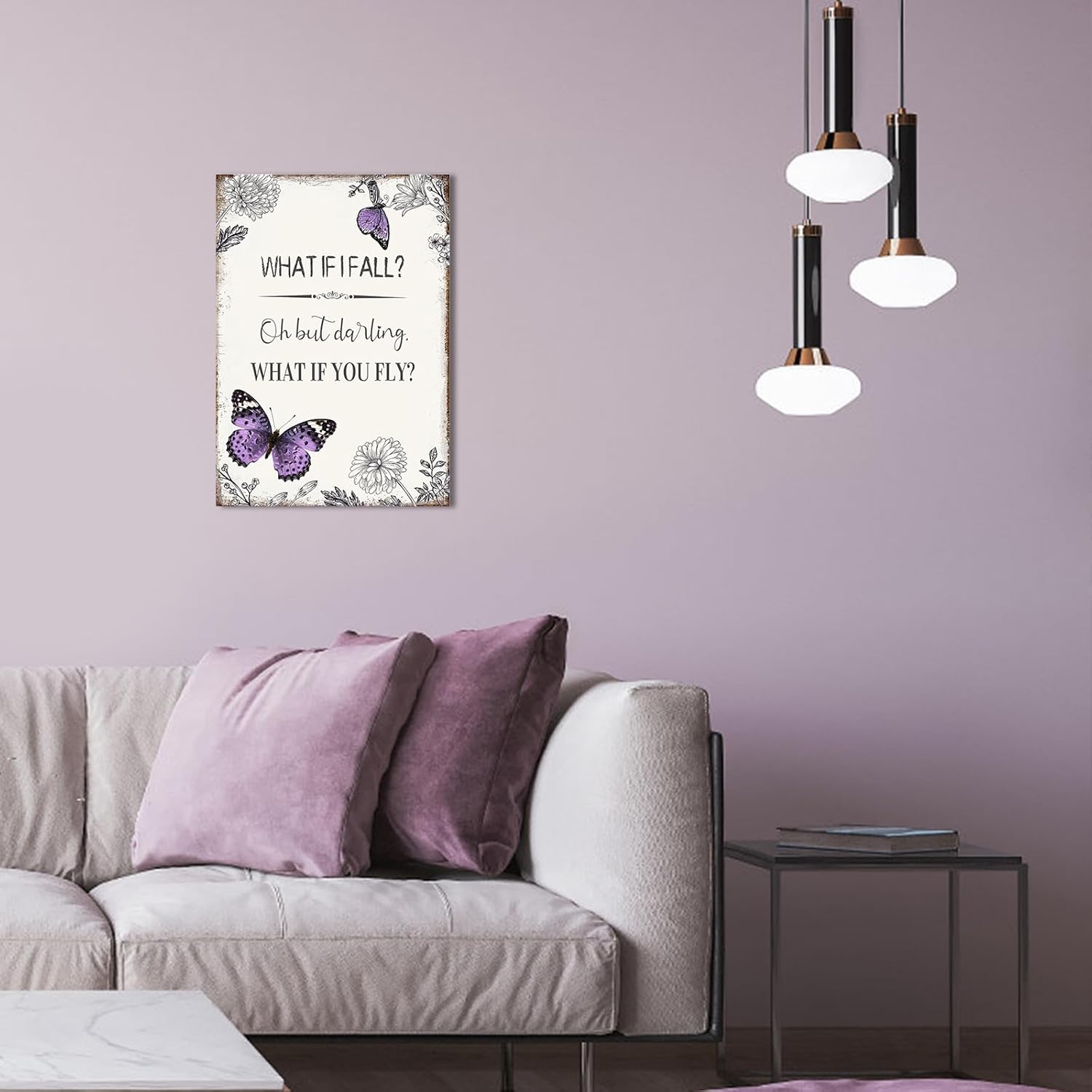 Be the first to review “YPY Inspirational Quote Canvas Wall Art : Purple Butterfly Picture Motivational Framed Poster, What if I Fall Positive Sign for Teen Girl Bedroom 10″ x 15″”