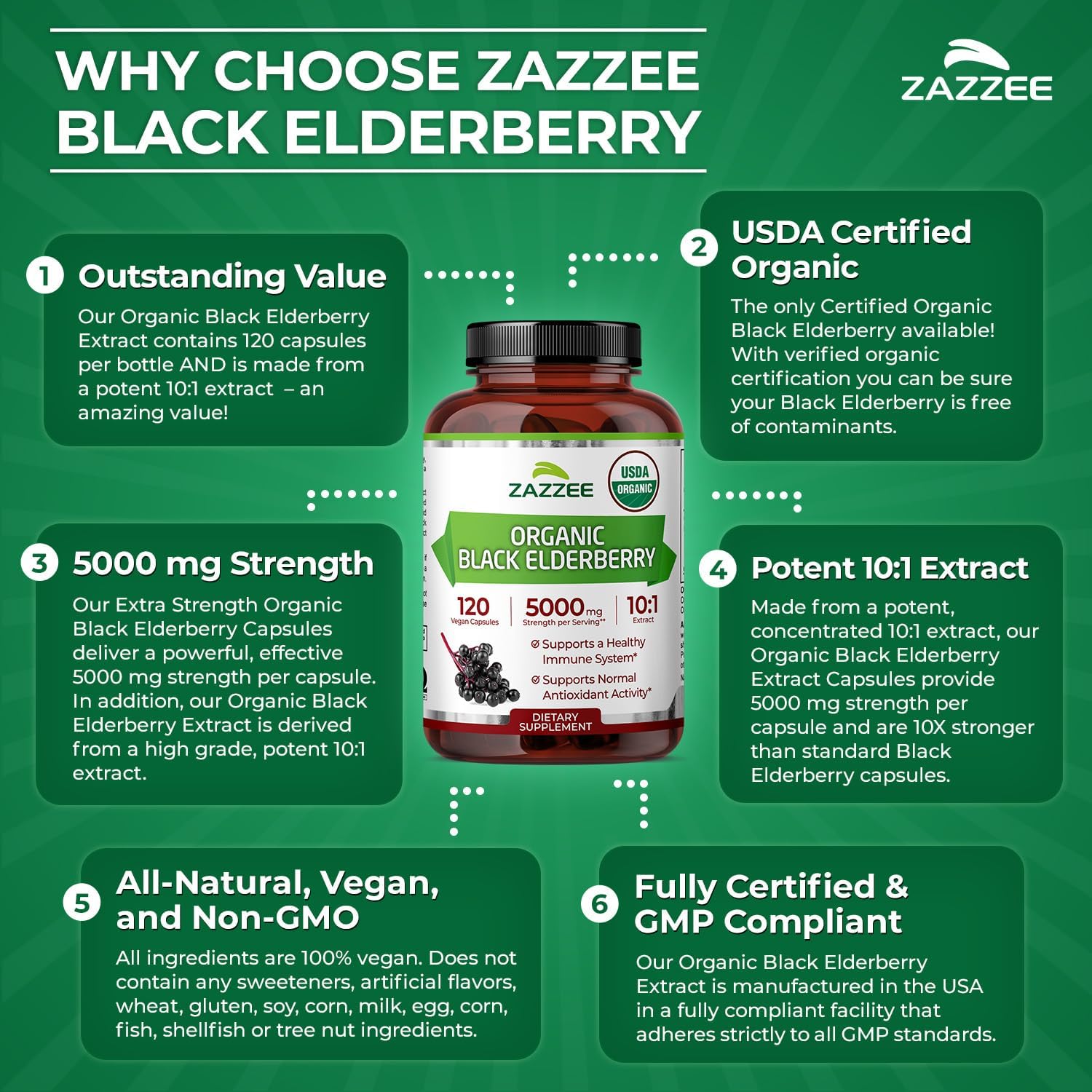 Zazzee Natural Black Elderberry Extract incorporates 5000 mg power per capsule and is derived from a potent 10:1 extract. Even higher, Zazzee Black Elderberry Capsules are licensed natural! Every bottle of our Black Elderberry Complement incorporates 120 capsules – a full 2 month provide. Zazzee Naturals Black Elderberry Capsules are licensed natural, vegan &non-GMO. Our Vegan Black Elderberry Natural Capsules are generally used for immune and antioxidant help and wholesome inflammatory response.*