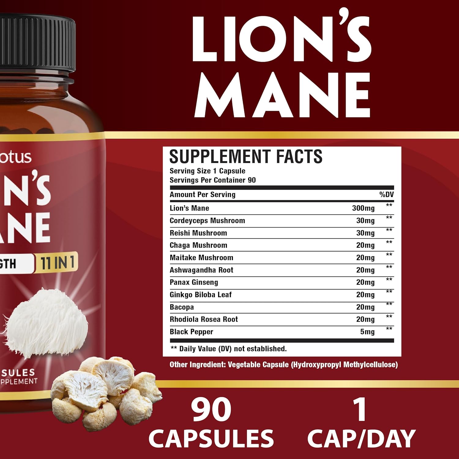 11in1: Zolotus Lions Mane dietary supplements included Cordyceps, Reishi, Chaga Mushroom, Maitake Mushroom, Panax Ginseng, Ashwagandha, Ginkgo biloba, Bacopa, Rhodiola Rosea, and Black Pepper. Complete help so your physique can soak up new advantages for the brand new single day